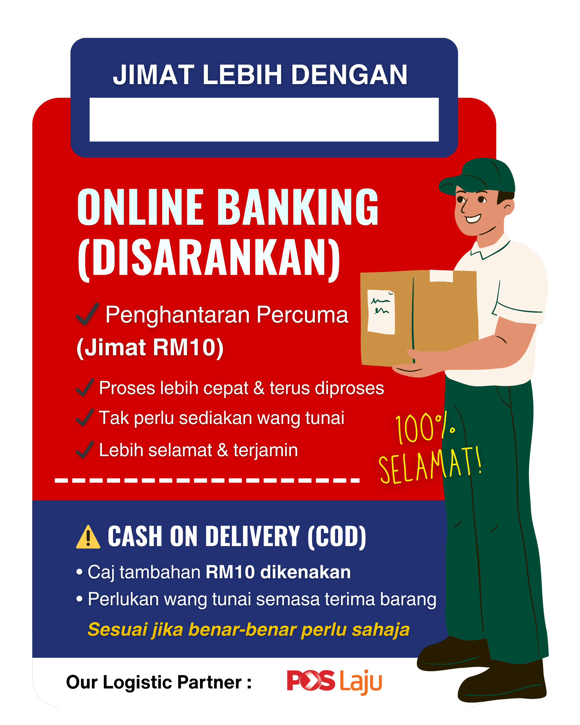 Postage Percuma Ke Seluruh Malaysia Termasuk (Sabah & Sarawak) Tidak Termasuk COD